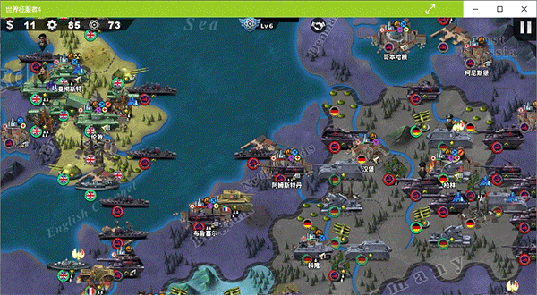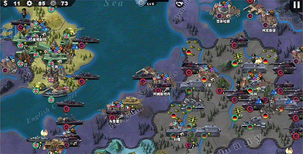 征服:在世界地图上展开大规模战争,可获取除奖章外的所有资源(金币、工业、能源、科技)。