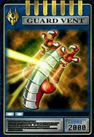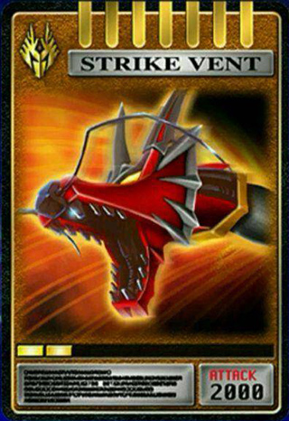 设计取材于无双龙腹部的三块腹甲,龙骑最多可召唤两块——单块时手持防御,双块则分别固定于左右手臂,形成强力护盾。值得一提的是,若由Decade使用此卡,甚至能直接变身为无双龙本体!