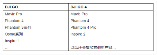 DJI GO和DJI GO 4目前分别支持哪些产品?