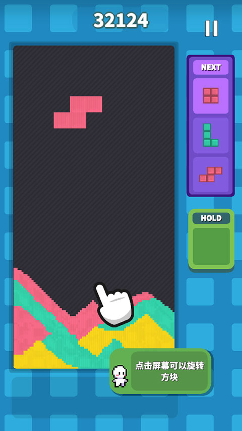 1、进入游戏后,点击屏幕即可旋转当前方块;