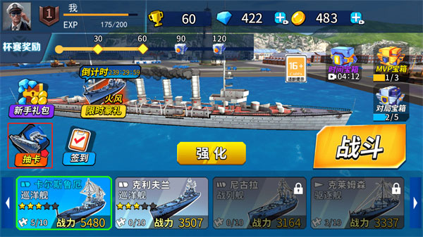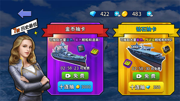 2、新战舰需通过抽卡方式获取;