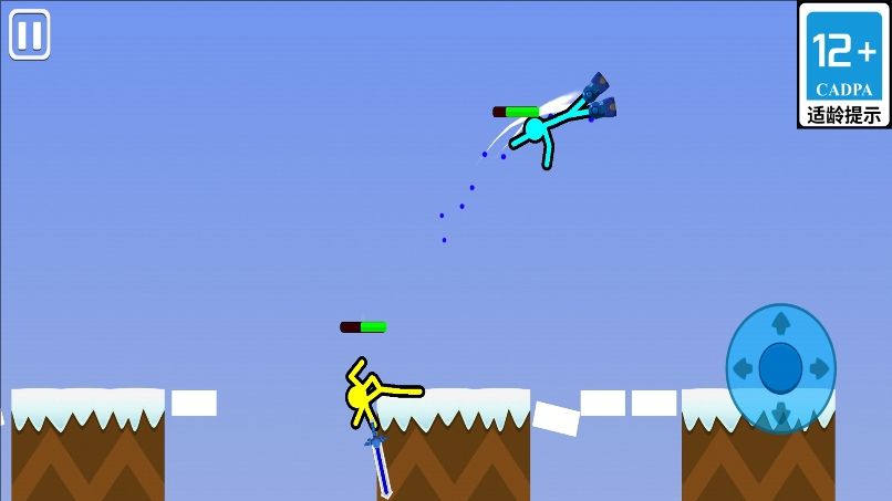 疯狂双人决战是一款主打欢乐与对抗的双人对战游戏。玩家将化身火柴人勇士,踏入充满未知与变数的战场,开启一场场酣畅淋漓的对决。每一关的场景都随机生成,从炽热翻滚的火山地带到寒风凛冽的雪原秘境,地图中不仅暗藏机关陷阱,更蕴藏着扭转战局的战术机会。你需要灵活运用随机获得的武器,精准打击对手,将其体力清零,或巧妙诱导敌人坠入岩浆、陷阱等危险区域,从而成功通关。