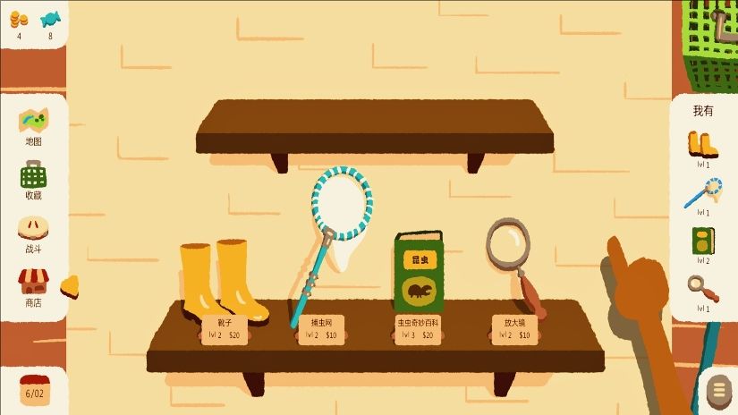 优先升级装备:尽快升级装备,以便发现和捕捉更稀有的昆虫。