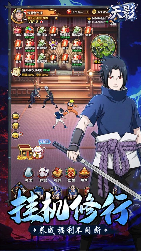 3、开局即送大量抽卡资源,轻松获取心仪忍者,快速组建强力阵容,大幅降低养成门槛,真正做到轻氪也能畅享高能战斗。