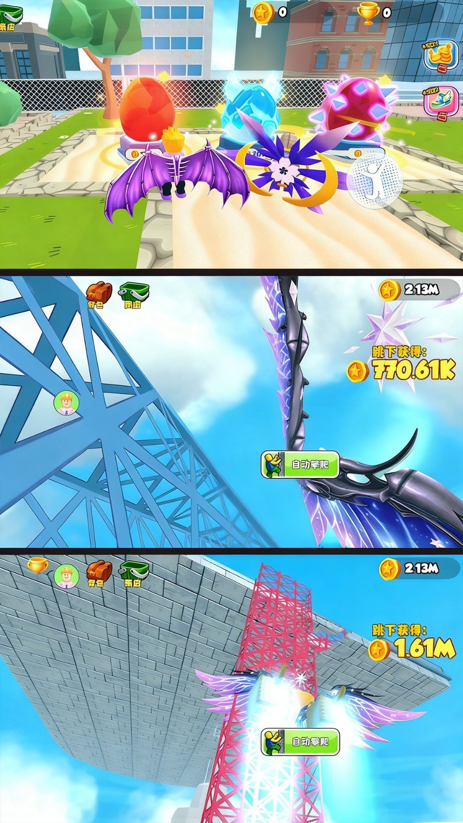 从高塔上直接跳跃时,系统会根据角色实际跳跃高度发放相应数量的金币奖励,让你在挑战中快速积累资源,加速成长进程。