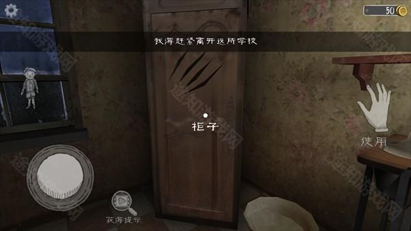 8、游戏中设有多个藏身点:大衣柜需打开后走入并关门;二楼的矮柜在白点对准开口时,右上角会出现交互图标,点击即可钻入躲避修女。