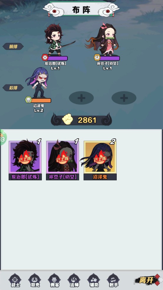 3、点击布阵界面,可自由调整角色站位,尝试不同体系组合,打造最适合你的战术阵容。