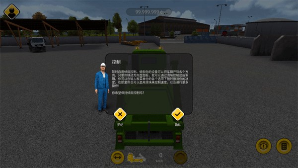右下角的两个按钮分别用于加速和刹车,上方的两个按钮则可切换摄像头视角,或在车辆陷入困境、发生事故时将其重置回道路起点,助你快速恢复施工状态。