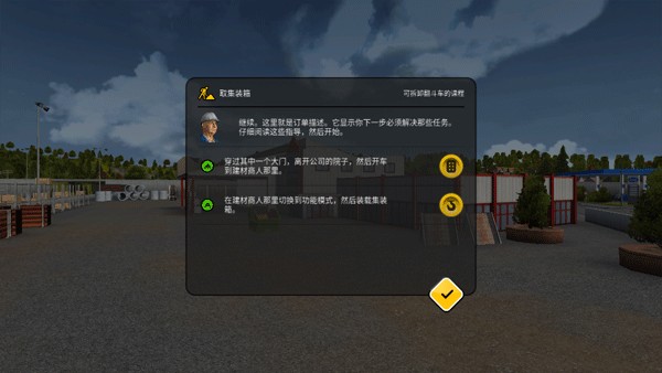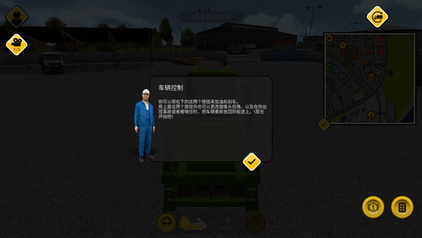 当你驾驶可拆卸翻斗车时,很快就能掌握基本操作。点击右上角按钮即可打开周边地图,快速查看关键地点分布,其中建材商人以绿色标记清晰标识。再次点击可关闭地图,同时还能通过小按钮进行缩放操作,建议亲自尝试熟悉使用。