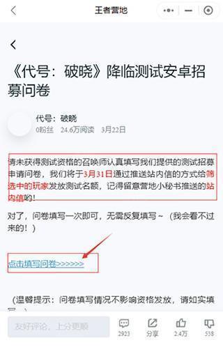 3、接着进入到招募计划的文章中,我们只需要根据要求填写调查问卷即可,参与之后只需要等待官方的通知即可,发放的时间在文章中都有提示;