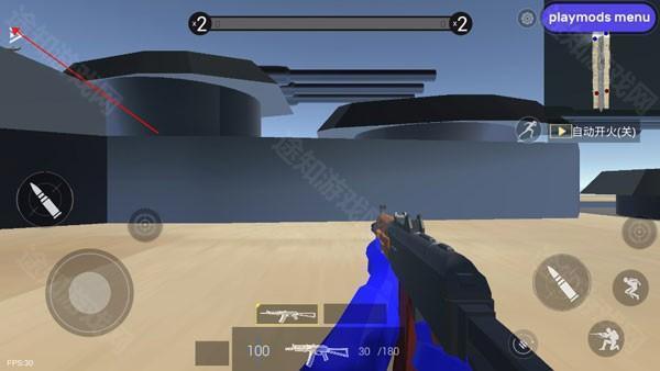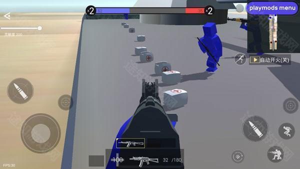 2、游戏玩法:目前主打积分赛模式,红蓝两队对抗,率先达到指定分数即获胜。每击杀一名敌人得1分。当前版本仅支持与AI对战,玩家可自定义AI数量。(注:界面中的“平衡”选项功能尚不明确,欢迎高手解答。)