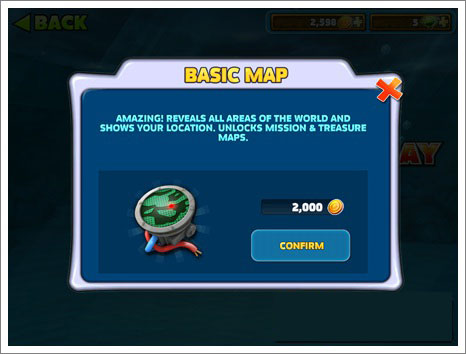 4、完成50个任务,寻觅宝物获取金币与宝石,用以升级鲨鱼或购买特殊救生道具。
