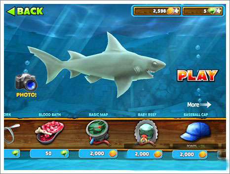 5、逐步解锁更多水下凶猛野兽:灰鲭鲨、锤头鲨、虎鲨及无敌的大白鲨!