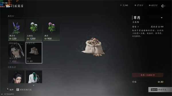 青溪门派可兑换草药,其他门派按需购买(价格通常低于主城商店)