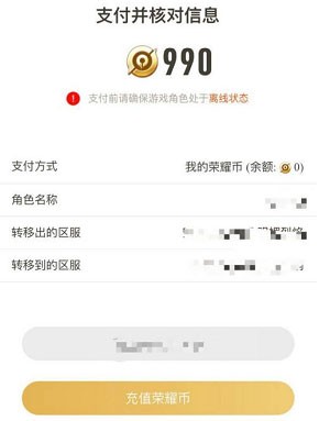 5、选择需转出的账号及目标设备平台,确认无误后提交,支付990荣耀币即可启动转移流程。