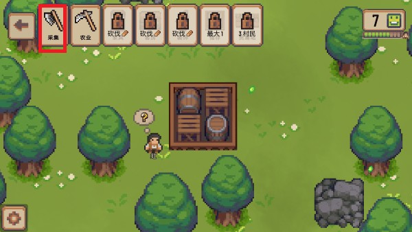 7、选中后,树木上方会出现工作图标,村民会自动前往执行砍伐任务。整个操作逻辑简单直观:选中区域,拉框确认,任务即自动分配。