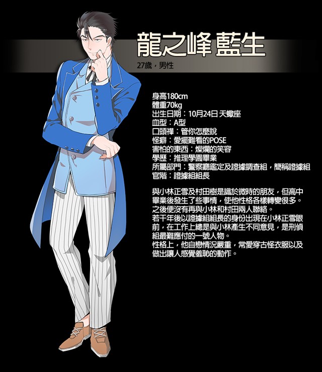 小林与村田的童年好友,高中毕业后因不明原因性情大变,断绝联系多年。如今以证据组组长身份重逢,却与小林在办案理念上屡屡冲突,成为刑侦组中最难缠的对手。他极度自恋,热衷奇装异服,言行举止常令人尴尬不已。