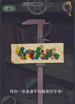 5、回到S区域,点击盆栽获得数字“7-5”;前往E区柜子左侧,调整尺子至7-5刻度,得到印有“SAEK”的字条;返回S区,输入大写密码“SAEK”打开桌下抽屉,获得时钟分针。
