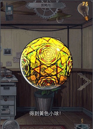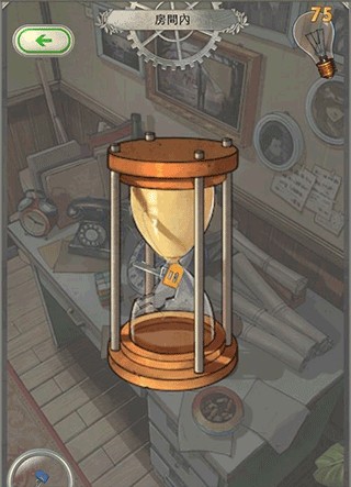 6、在S区桌上找到沙漏,点击后将手机倒置,触发机关掉落黄色钥匙;打碎沙漏即可拾取该钥匙。