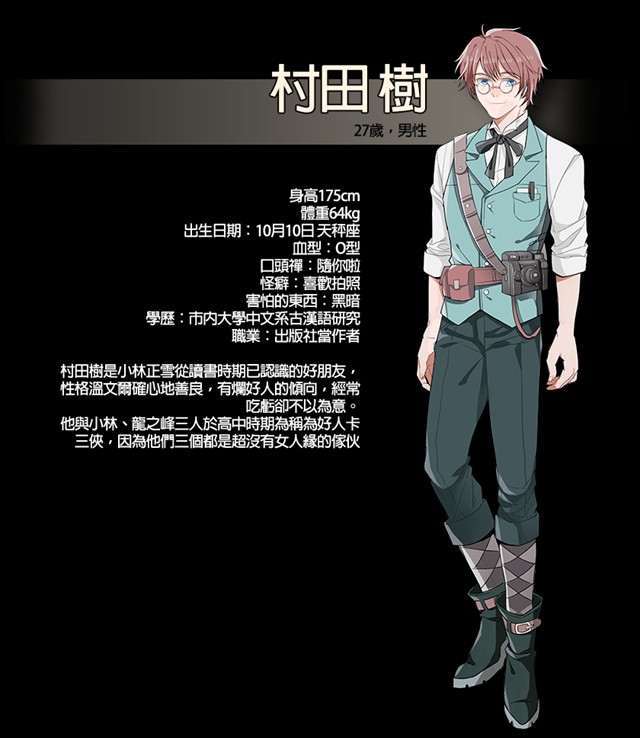 小林正雪自学生时代起的挚友,性格温和善良,甚至有些“烂好人”倾向,常因不愿拒绝他人而吃亏。他与小林、龙之峰三人曾被称为“好人卡三侠”,皆因三人虽人缘极佳,却总在感情中无疾而终。