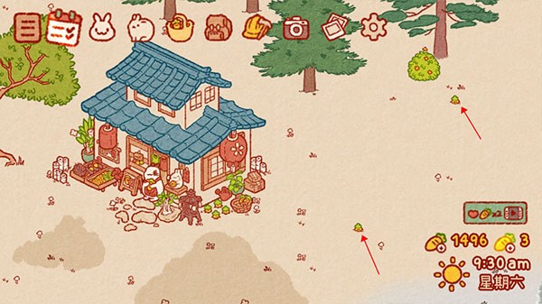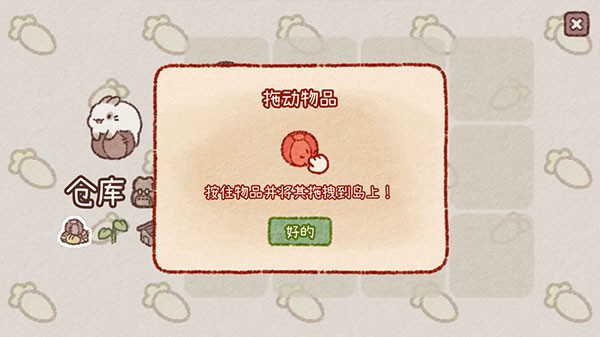 不断完善小岛,吸引兔子来访!另外,空地上经常会刷出萝卜,可以收集哦。