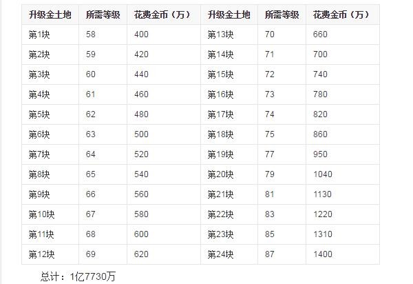 qq农场官方版金土地升级表攻略