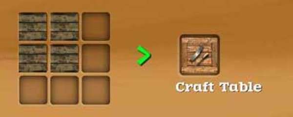 制作工作台非常简单,仅需使用游戏中随处可见的木板即可。按照图示摆放方式放置材料即可合成。该配方无需解锁,从游戏一开始就能直接制作。