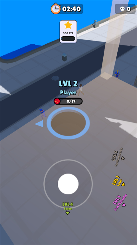 2、每成功吞噬一个物体,黑洞的体积和生命值都会相应增长,策略与操作并重。