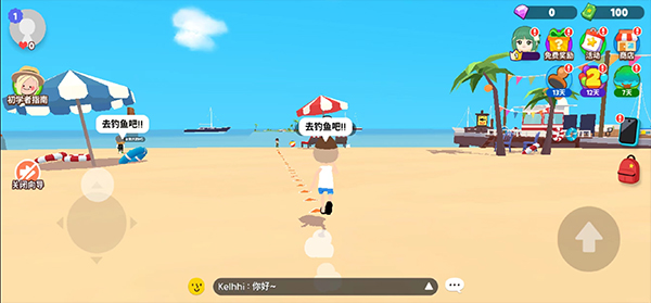 4、靠近沙滩边的角色,即可获得一根鱼竿;