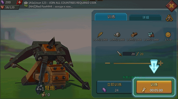 2、点击一个需要训练的兵种。