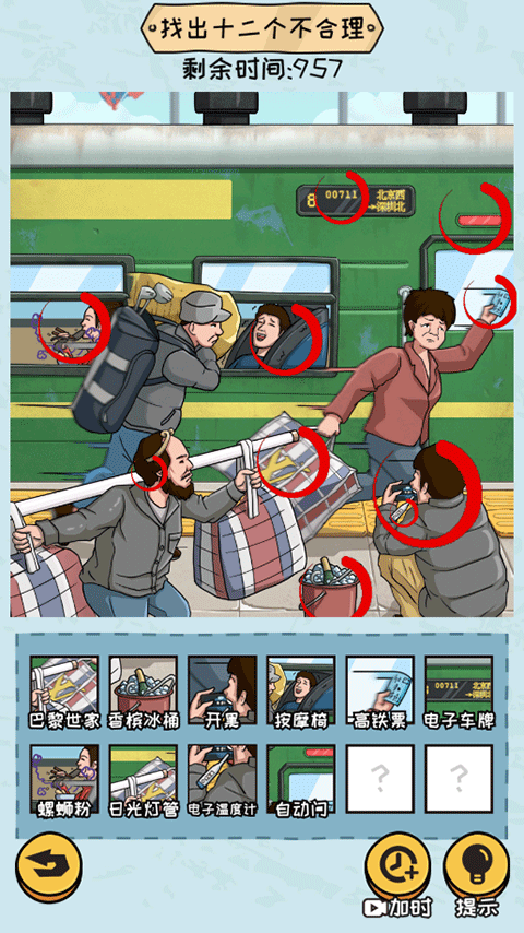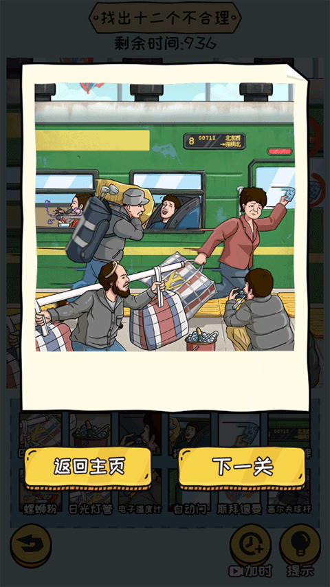 4、仔细观察,找出十二个不合理的物品,但需要注意的是有时间限制,并且如果玩家点错了还会减少时间;