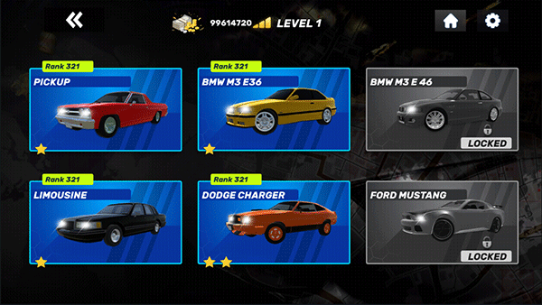 2、游戏中提供多款风格各异的汽车供你解锁与驾驶,挑选心仪的座驾后进入下一步;