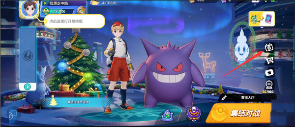 1、启动宝可梦大集结手游,进入主界面后点击右侧第一个图标按钮;
