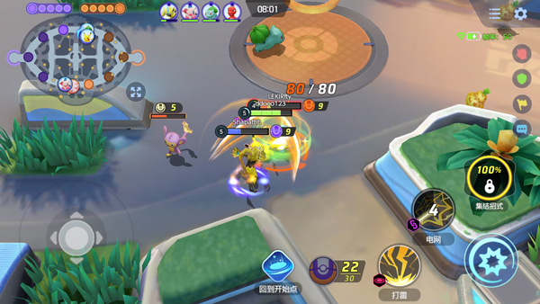 5、稍等片刻完成加载,游戏采用5v5 MOBA玩法,你需要操控宝可梦击败野怪、干扰敌方,并获取分数;