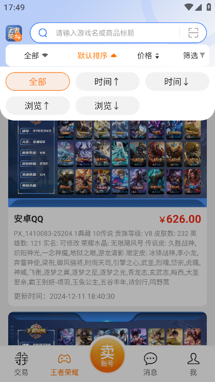 4、进入具体分类后,即可查看其他玩家发布的各类可交易商品,按需筛选心仪内容。