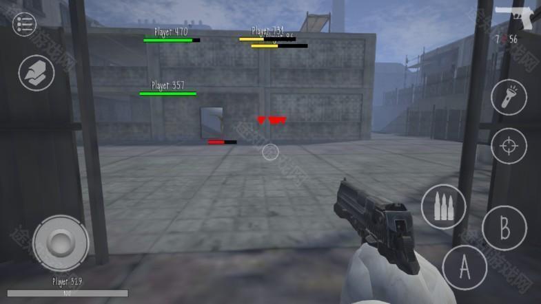 当房间人数满员后,游戏将自动开始。左侧区域用于控制角色移动,右侧则集成攻击、瞄准、跳跃等操作按钮。