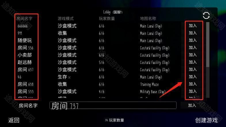 服务器内包含多个房间,选择一个未满员的房间,点击右侧的【加入】即可进入。