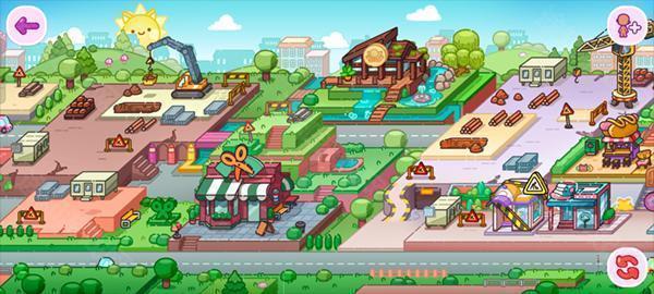 游戏地图中分布着各种特色建筑,例如带有剪刀标志的理发店,点击即可进入体验美发服务,开启造型之旅。