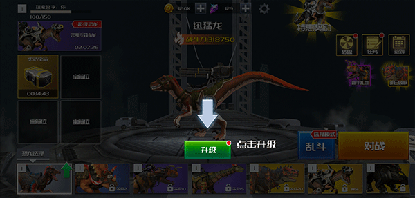 此外,在首页的恐龙选择界面,你可以自由更换出战恐龙,并对已拥有的恐龙进行升级。升级后的恐龙不仅外观更炫酷,战斗力也将大幅提升,助你在后续战斗中无往不利。