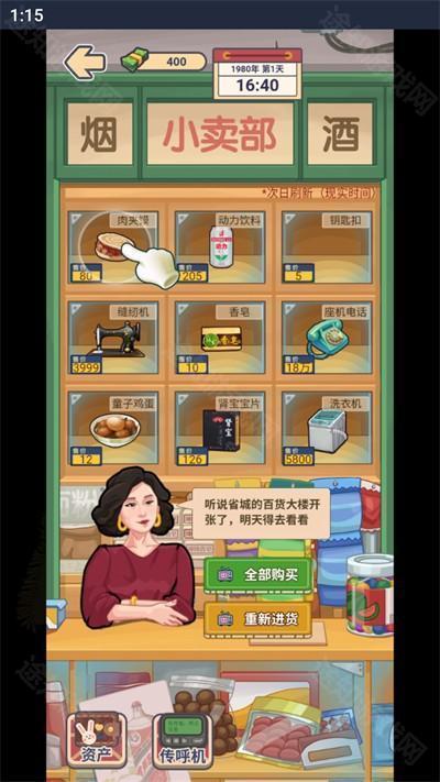 供销社内提供丰富多样的商品,玩家可使用当前资金购买合适物品,再通过转卖赚取差价,实现资本滚动增长。