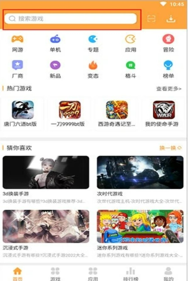 1、进入首页后,可通过分类浏览或直接搜索,快速锁定你感兴趣的游戏;
