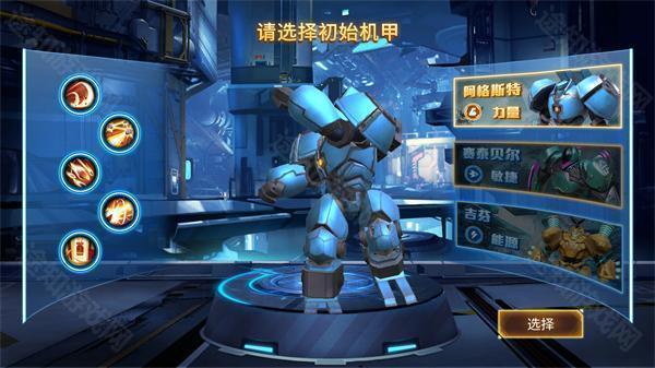 进入游戏后,首先选择你心仪的初始机甲,每位机甲都拥有独特属性和成长路线,建议根据个人操作习惯进行挑选。