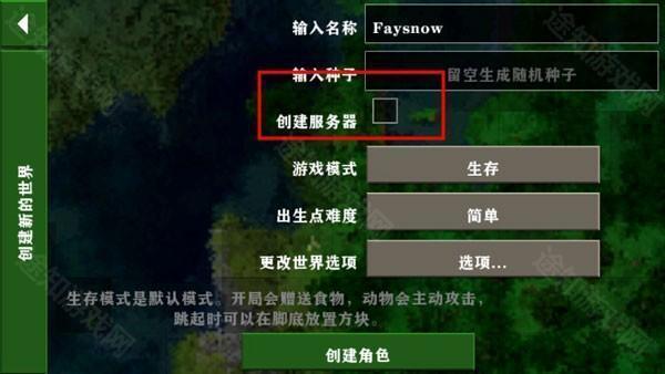 世界的名字:在此输入你自定义的地图名称,定义游戏世界的名字;