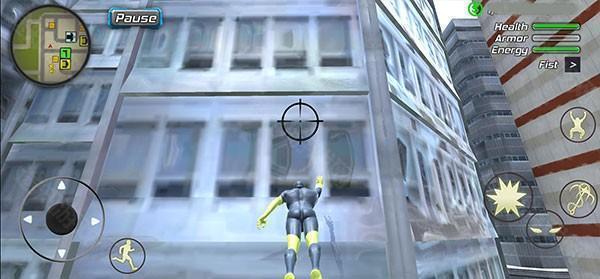 玩法直观流畅,玩家可借助灵活的跳跃与攀爬机制,在高楼林立的城市天际线间自由飞荡,体验如蜘蛛侠般的畅快移动感。