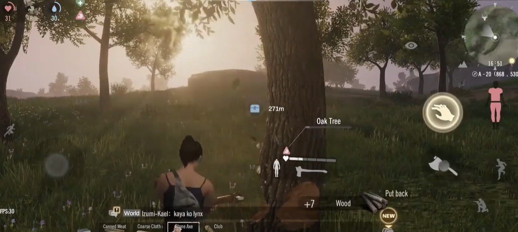 使用斧头砍伐树木是获取木材的最直接方式,而木材是初期制作工具和搭建庇护所的关键材料。