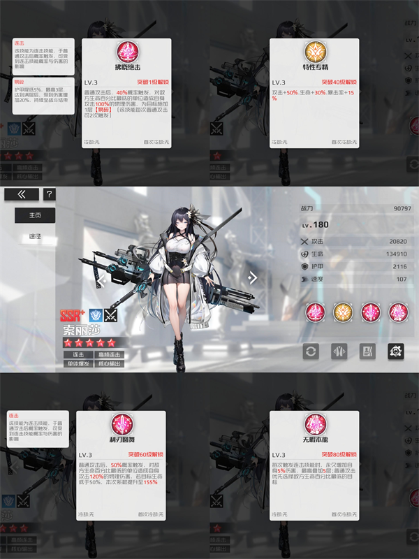此流派围绕“阵型”机制构建,由欧内斯特、纳兰徳、艾蕾娜、蓝宝石、红宝石五位具备阵型技能的指挥官,配合核心角色娜塔莉娅组成。除娜塔莉娅外,其余五人在首次释放技能后将进入特殊阵型状态——虽附带如降低命中或禁止暴击等负面效果,但同时提供高额闪避或反制能力。此时,娜塔莉娅的技能便至关重要:不仅能净化队友的负面状态,还能对全体敌人造成初始84%的伤害,并随敌方人数减少而增强,最高可达240%。需要注意的是,娜塔莉娅需通过每日礼包获取碎片(共需40片激活),虽有一定获取门槛,但后续升星可使用通用SS碎片,配合活动奖励与自选道具,整体培养路径清晰可行。