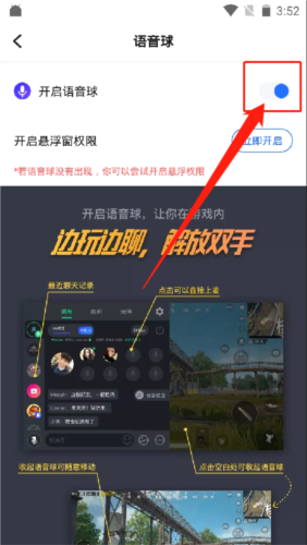 4、在语音球设置页面,点击右侧的开关按钮即可关闭语音球功能。