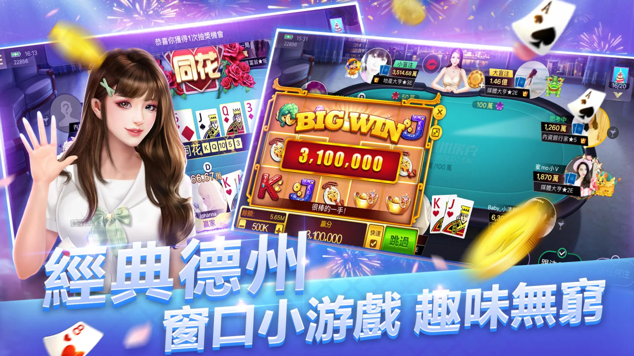 社交互动,福利不停:支持实时语音聊天功能,方便玩家在游戏中即时交流、结交牌友。每日海量金币与道具免费放送,配合持续更新的游戏内容和逼真的3D立体画面,带来沉浸式娱乐体验。