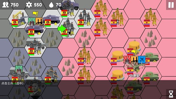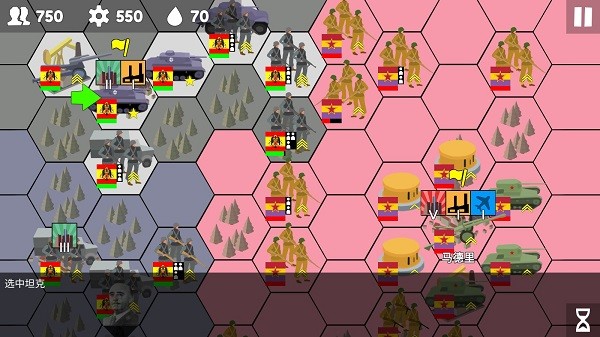 2、点击单位后,周围会出现绿色方格,点击任意绿色方格即可指挥部队移动至该位置。