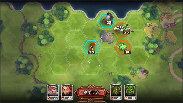 6、若无法直接攻击,则需先移动至敌方相邻格,待下一回合再发动进攻。完成所有操作后,记得点击“结束回合”以轮换攻防。